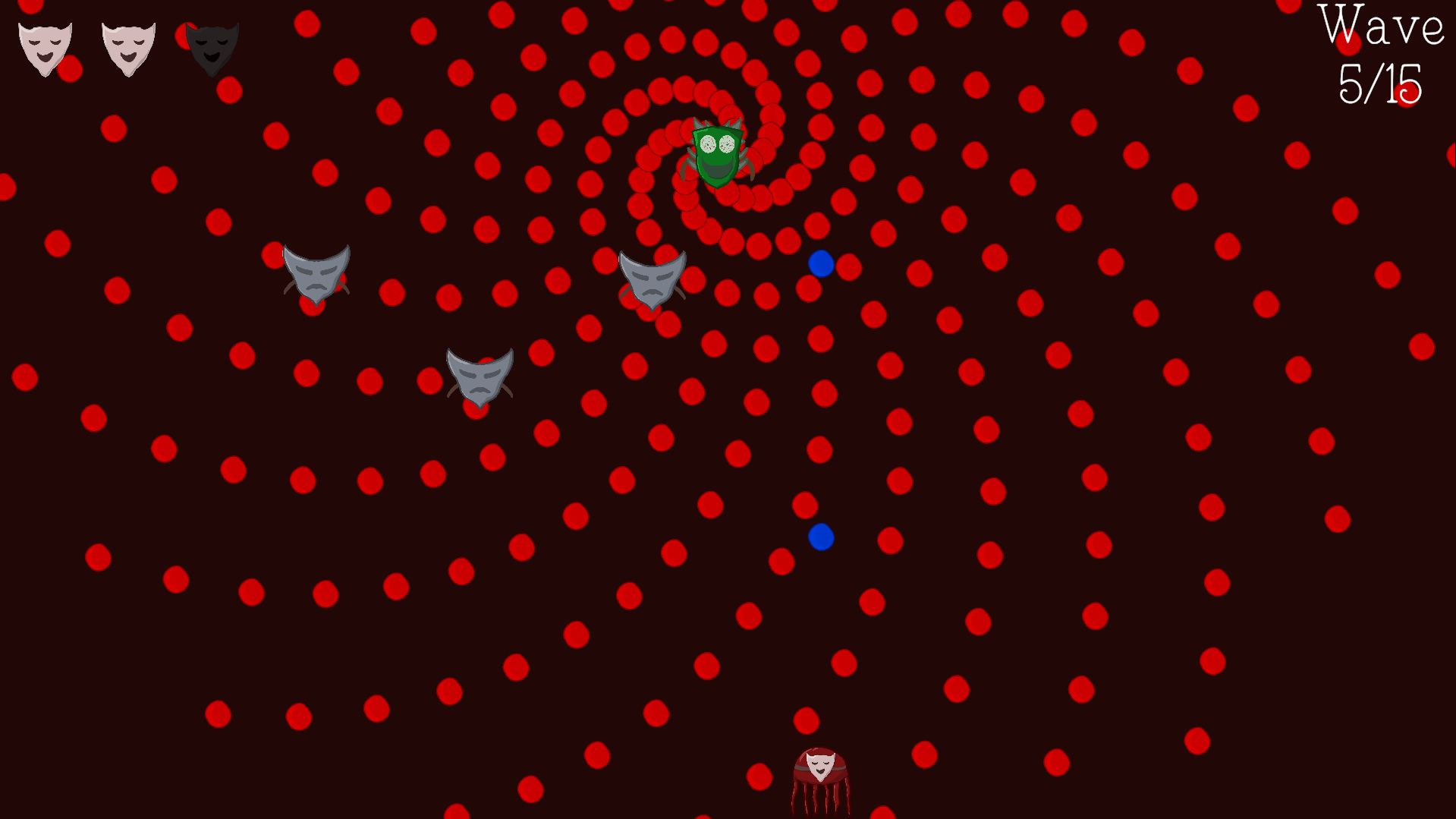 A bullet hell shmup game featuring a mask wearing jellyfish-like creature fighting against possessed masks. Made for GGJ 2026 in under 48 hours.